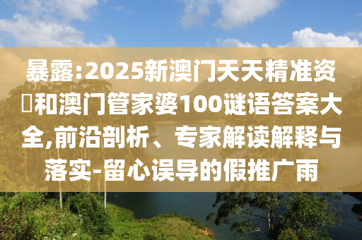 暴露:2025新澳門天天精準資枓和澳門管家婆100謎語答案大全,前沿剖析、專家解讀解釋與落實-留心誤導的假推廣雨