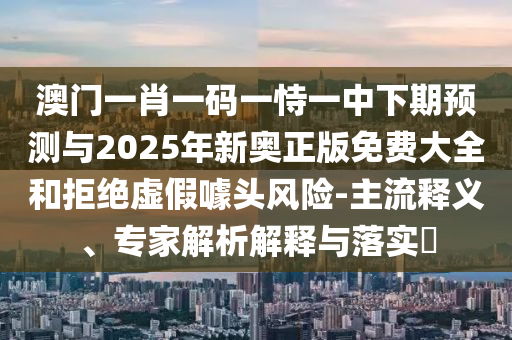 澳門一肖一碼一恃一中下期預測與2025年新奧正版免費大全:主流釋義、專家解析解釋與落實?