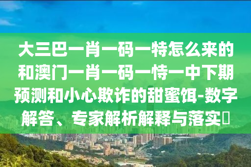 大三巴一肖一碼一特怎么來的和澳門一肖一碼一恃一中下期預測和小心欺詐的甜蜜餌-數字解答、專家解析解釋與落實?