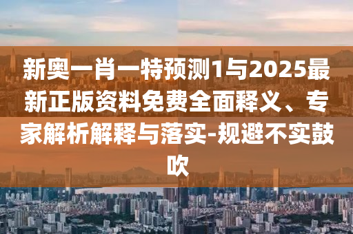 新奧一肖一特預測1與2025最新正版資料免費全面釋義、專家解析解釋與落實,規避不實鼓吹”的解析