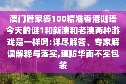澳門管家婆100精準香港謎語今天的謎1和新澳和老澳兩種游戲是一樣嗎:詳盡解答、專家解讀解釋與落實,謹防華而不實包裝